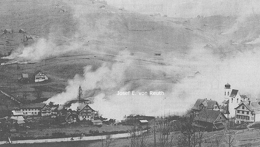 18 Wohnhäuser, 17 Ställe und Scheunen, in einem Umkreis von 3.5 Kilometern und 200 bis 300 Metern Höhendifferenz, wurden eingeäschert.